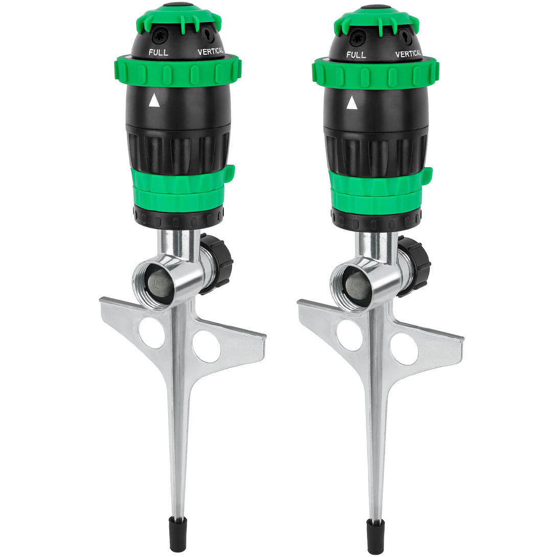 - Heavy Duty Construction – Built to last, designed with high-impact plastic and a zinc alloy metal spike base, this sprinkler is built to withstand harsh weather conditions. Its durable construction ensures long-lasting performance, making it a reliable choice for years of use.