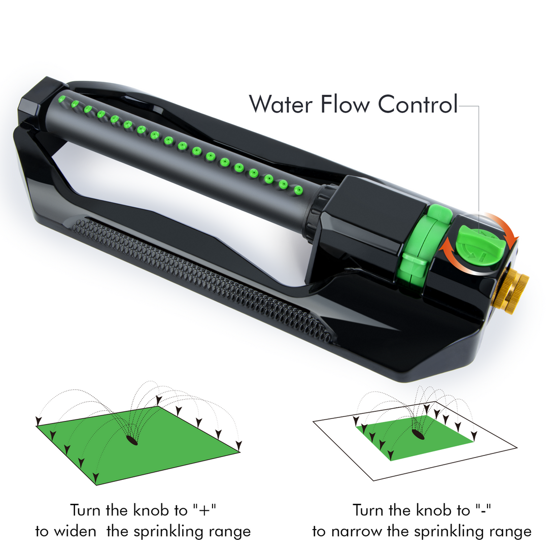 - Easy Range Adjustment Tabs: Easy-to-use sliding tab range controls allow you to effortlessly adjust the coverage area, giving you precise control for watering narrow flower beds or wide garden spaces.