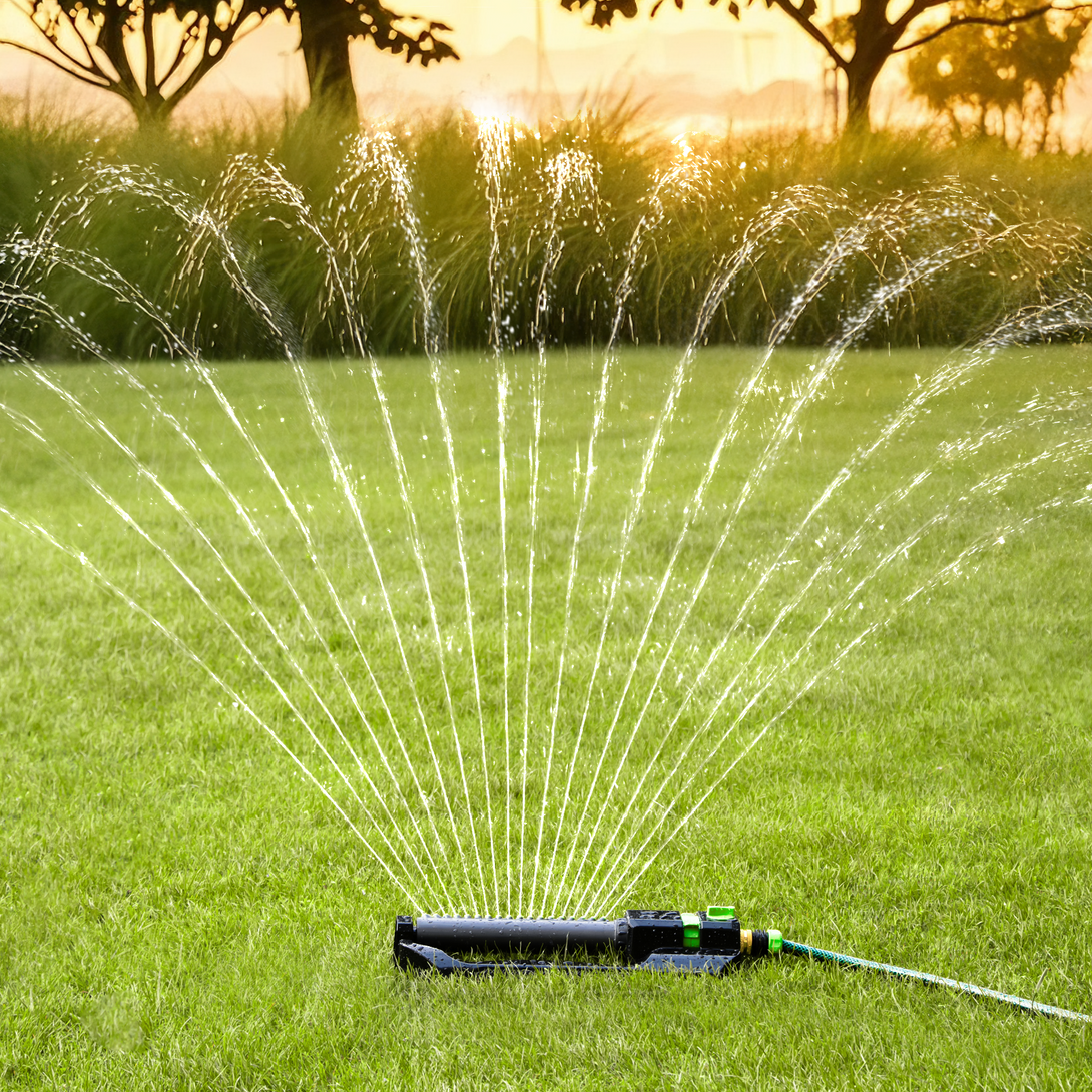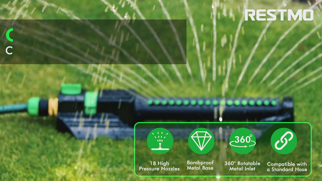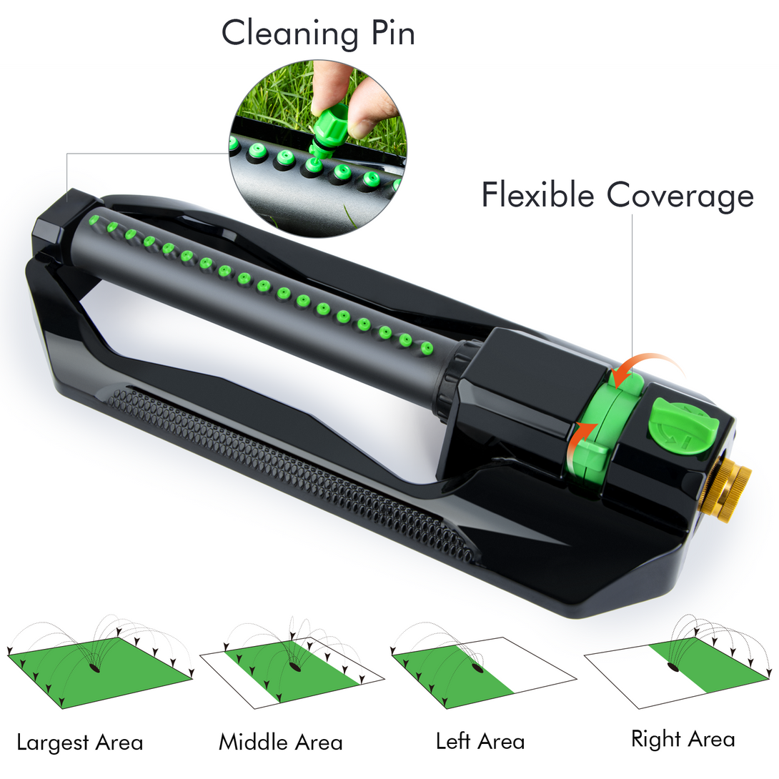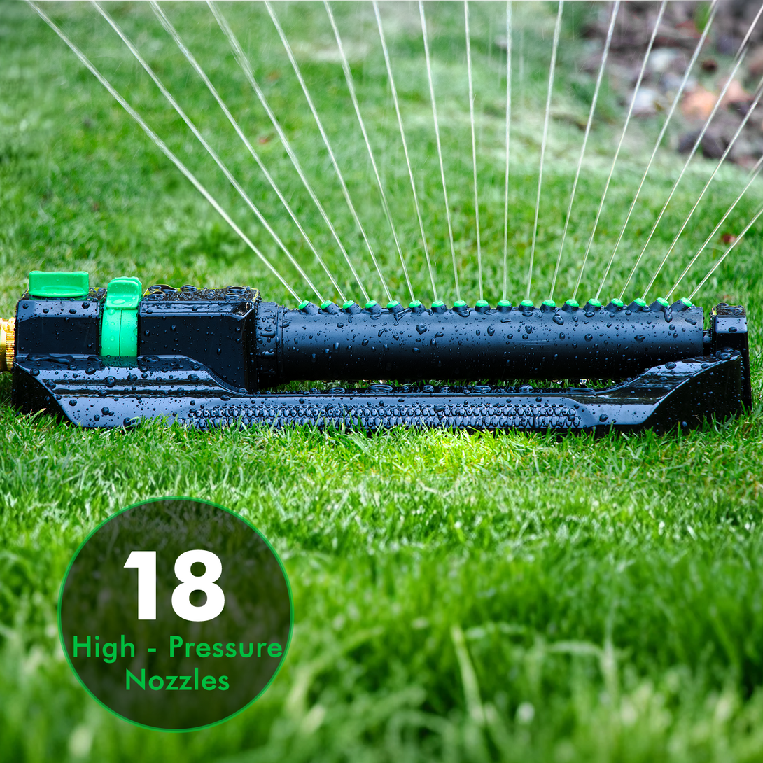 - 18 Precision Spray Nozzles: Equipped with 18 precision nozzles, this sprinkler delivers even and efficient water distribution, ensuring maximum coverage of up to 3,600 sq. ft., ideal for large lawns, gardens, and flower beds.