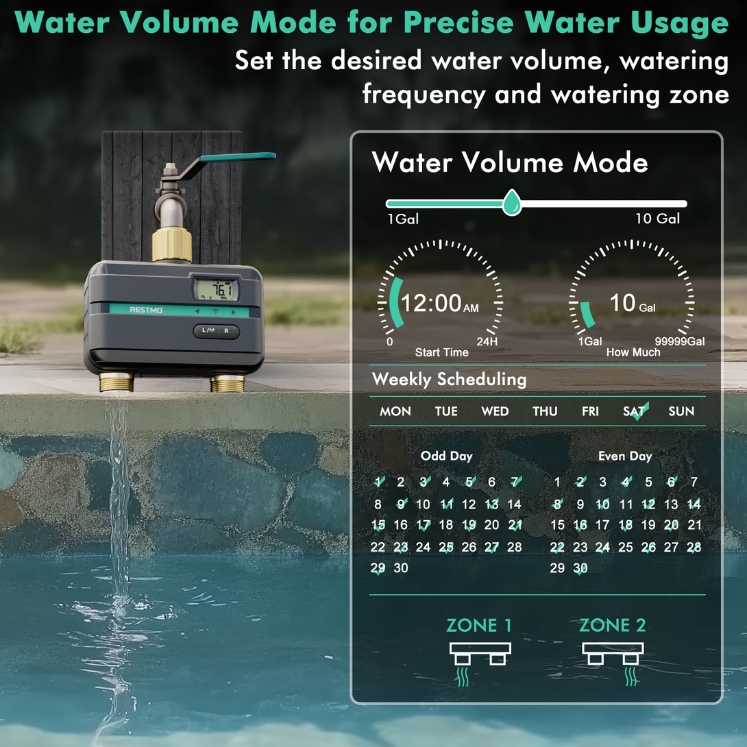 - 【Precise Water Volume Control】 Switch to Water Volume Mode to set exact water usage and frequency. This feature ensures efficient water management, preventing overwatering while keeping plants hydrated. Track real-time usage data in the app, including daily/weekly/monthly/year consumption reports to optimize sustainability. Perfect for delicate plants, water-conscious gardening, or areas with strict usage regulations.
