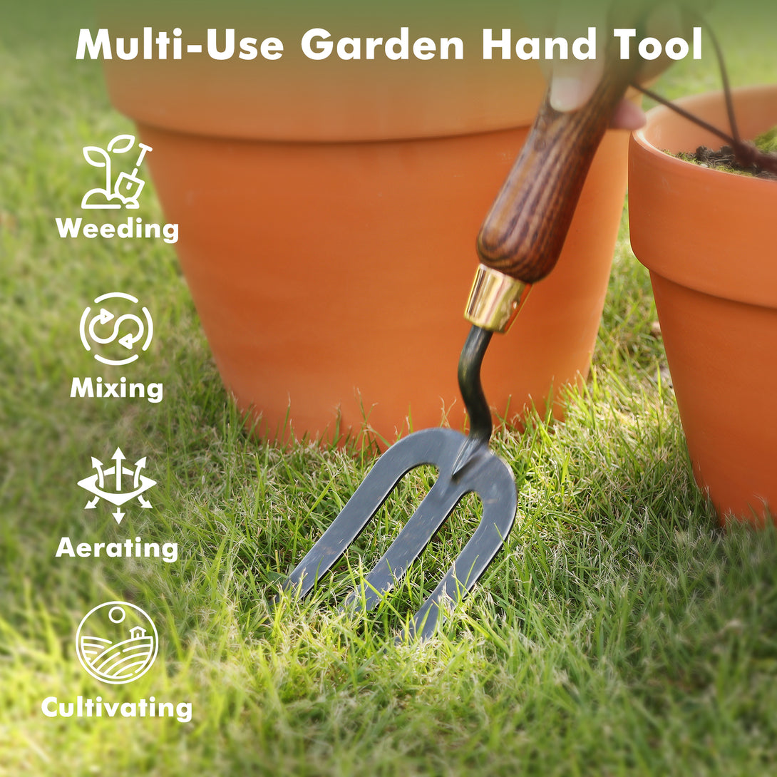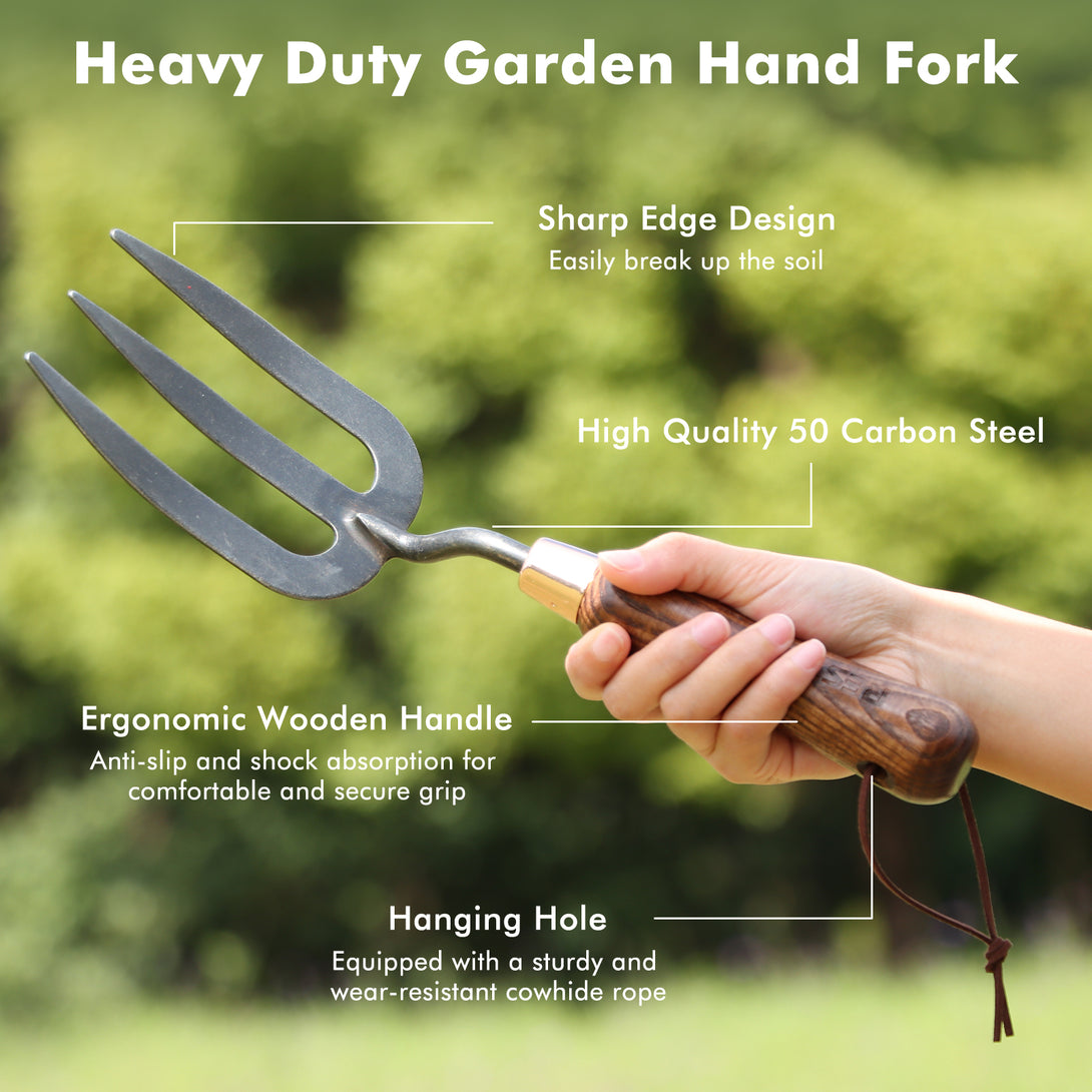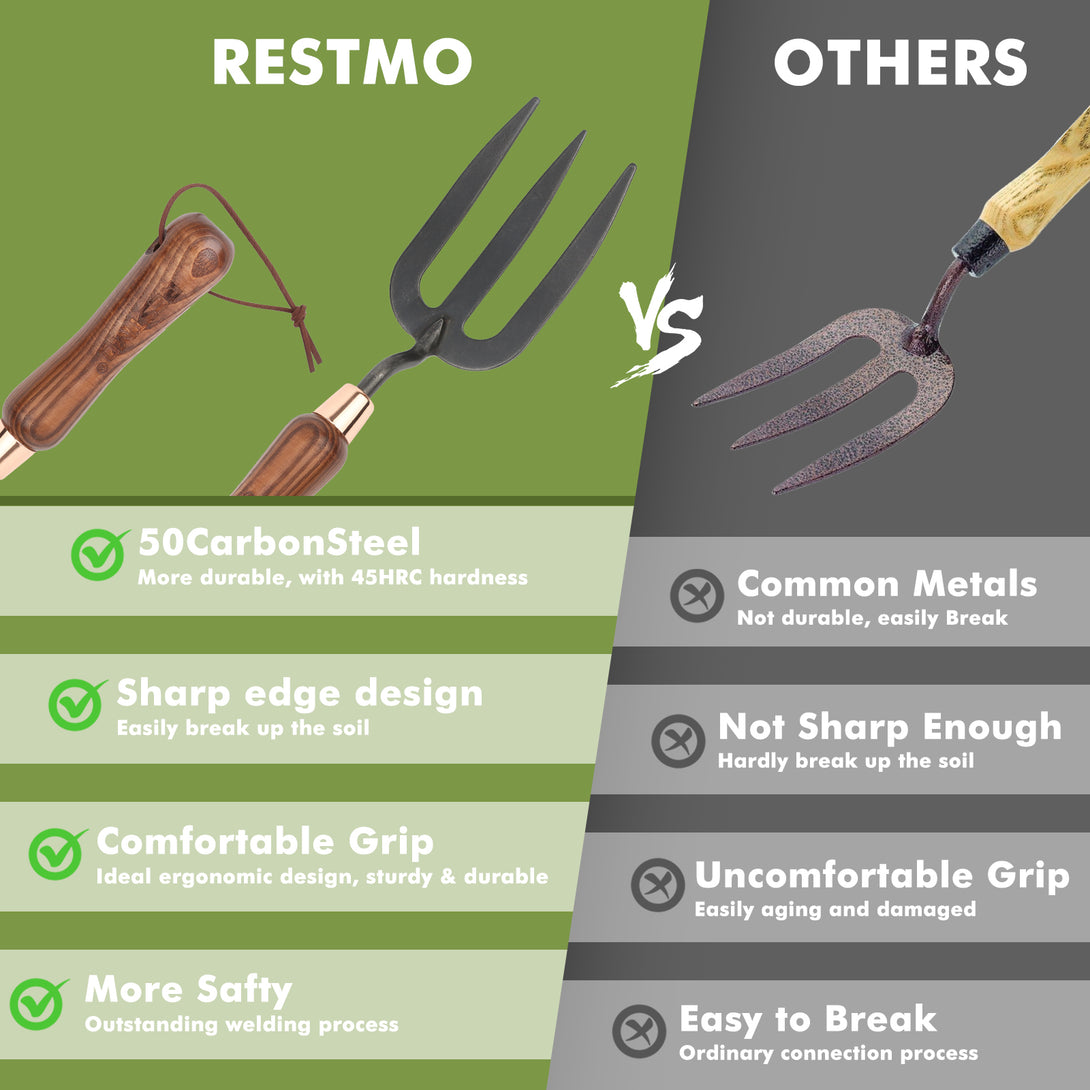 RESTMO Heavy Duty Gardening Hand Fork, Thickened Hand Weeding Fork for Planting or Removing Plants, Turning Soil, Weeding, and Cultivating