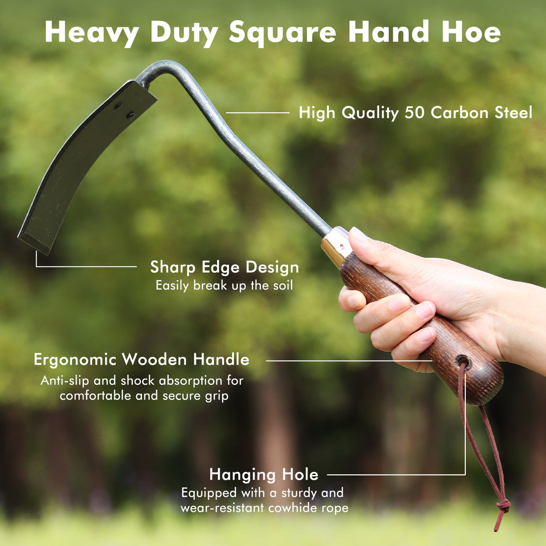- Industrial Strength Durability: Features a razor-sharp cutting edge with reinforced welding and riveting that prevents bending or breaking. This garden hoe maintains its sharpness through tough weeding and demanding soil work, delivering reliable performance season after season.