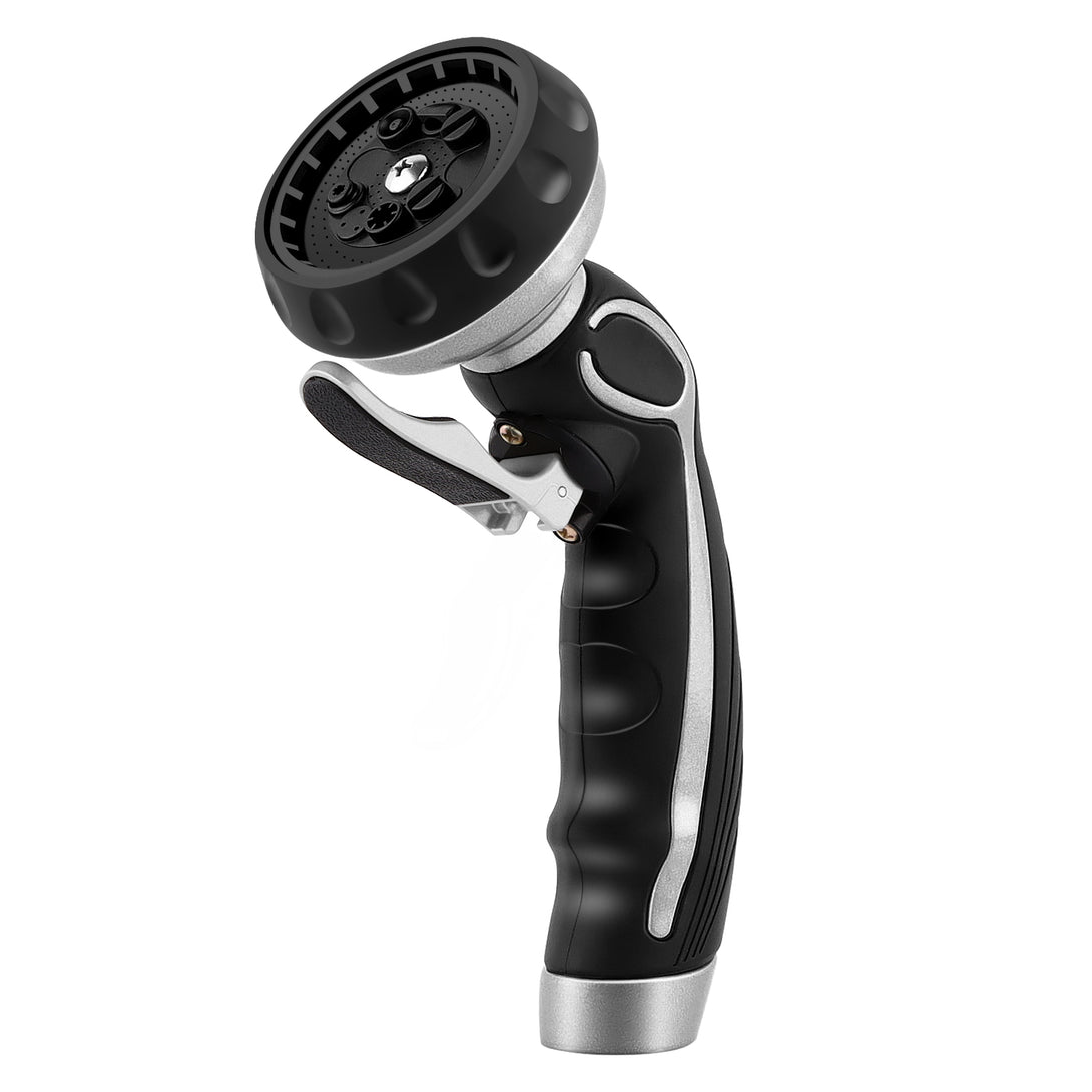 - 【Heavy Duty Garden Hose Nozzle】The nozzle gun body is constructed with zinc-alloy material, solid & robust to resist rust, corrosion and wear. The shock resistant rubberized bezel dial can enhance durability & flexibility and withstand hard impacts & heavy force in daily drops and shocks. It is much stronger, more durable and long-lasting than plastic water nozzles.