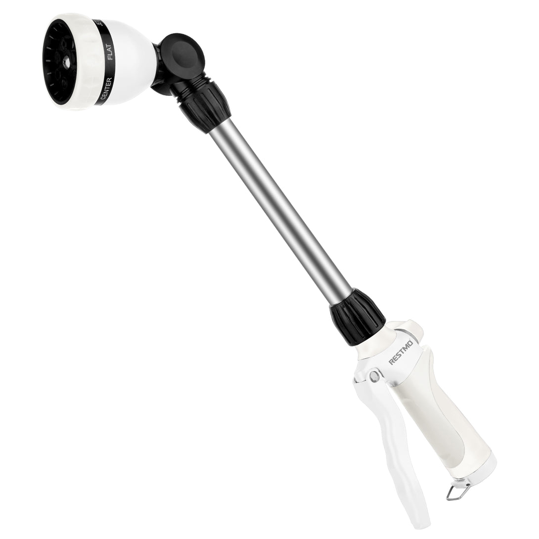 RESTMO Metal Watering Wand, Heavy Duty Garden Hose Wand with 180° Swivel Ratcheting Head, 16-Inch Hose Nozzle Sprayer with 7 Spray Patterns and Flow Control, Ideal to Water Hanging Baskets and Shrubs